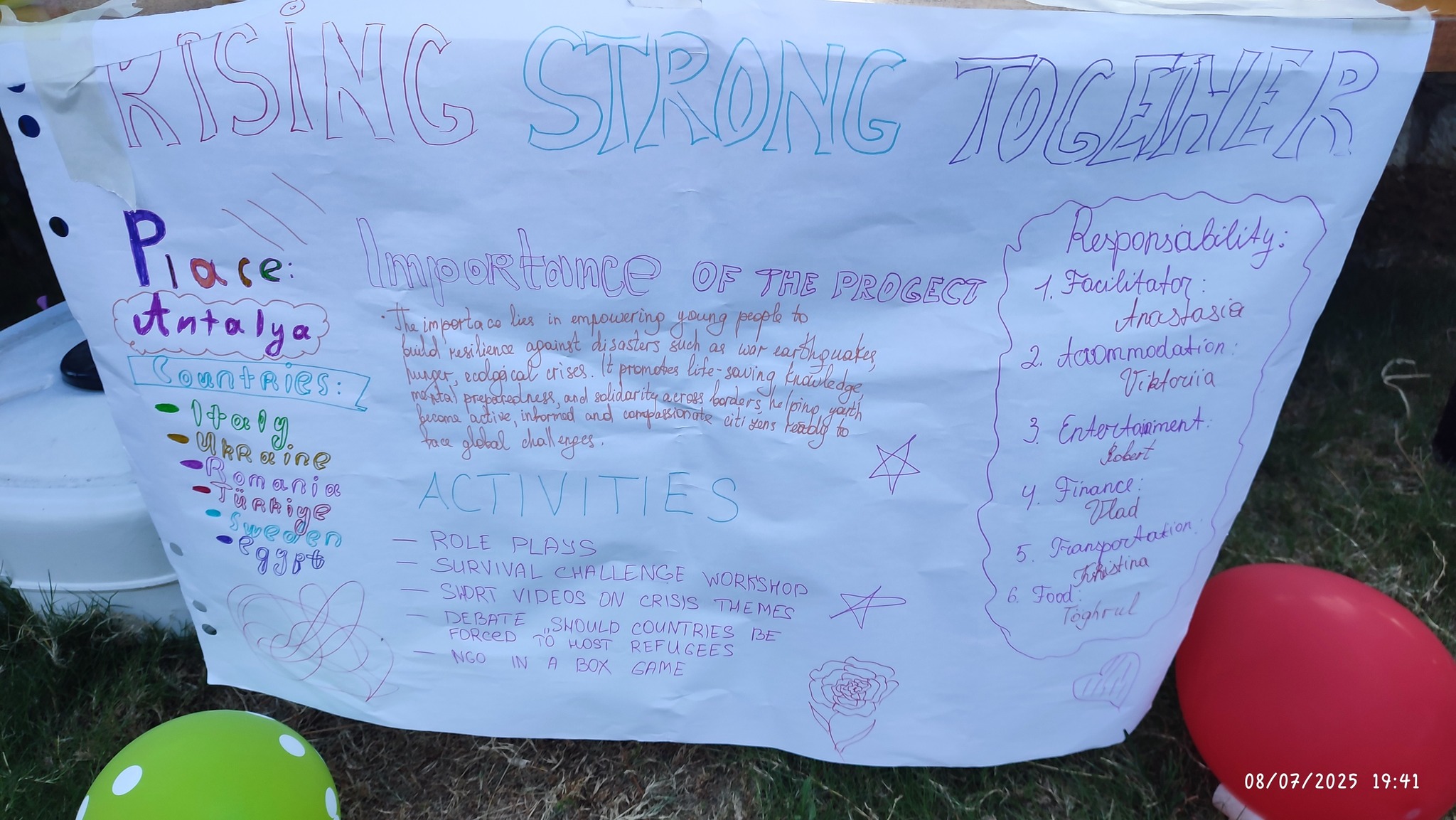 Proje fikri, dernek başkanımızın kızı ve arkadaşı tarafından geliştirilerek yazıldı; böylece hem gençlerin inisiyatif aldığı hem de uluslararası dayanışmayı güçlendiren bir süreç ortaya çıktı.